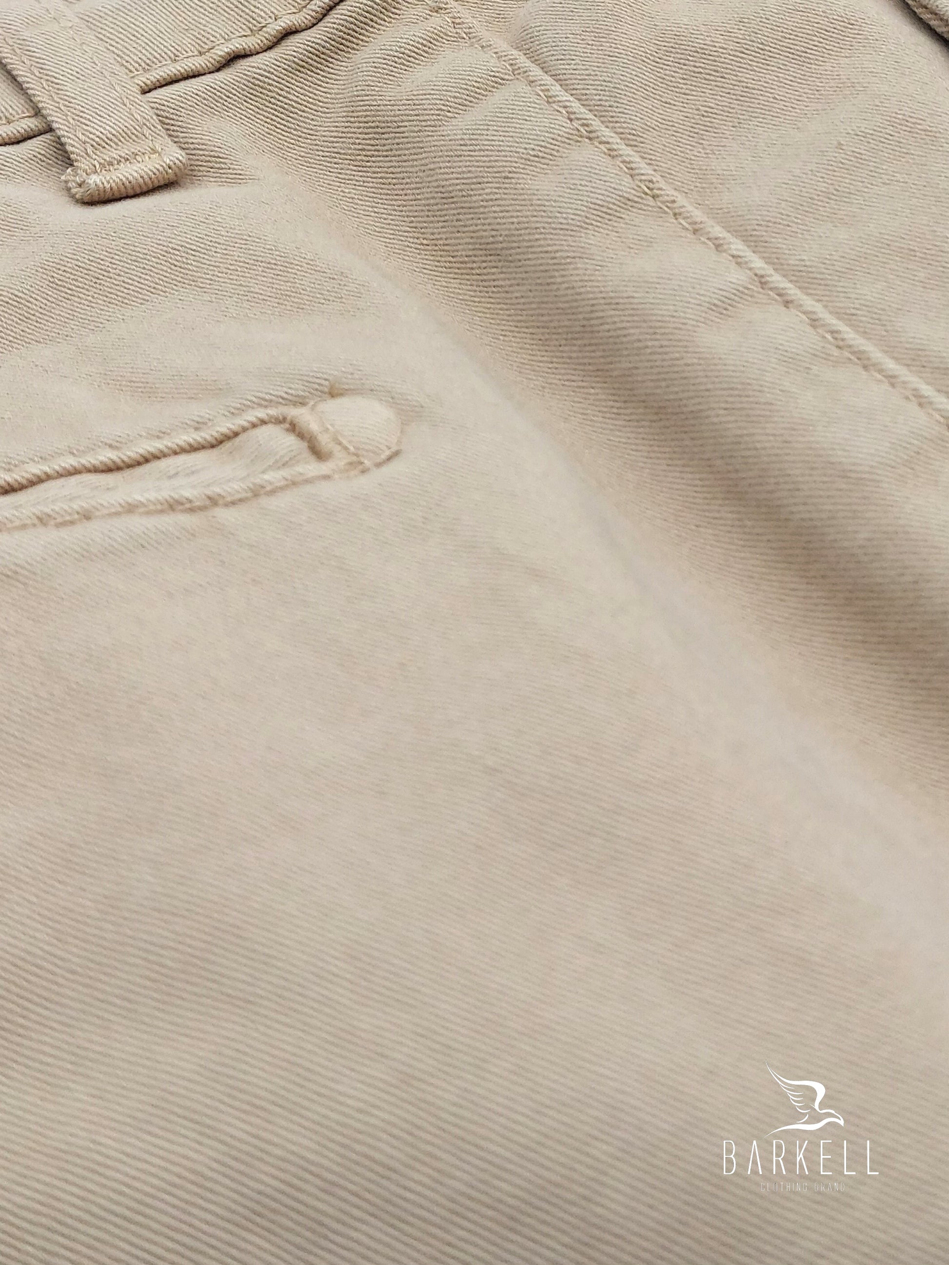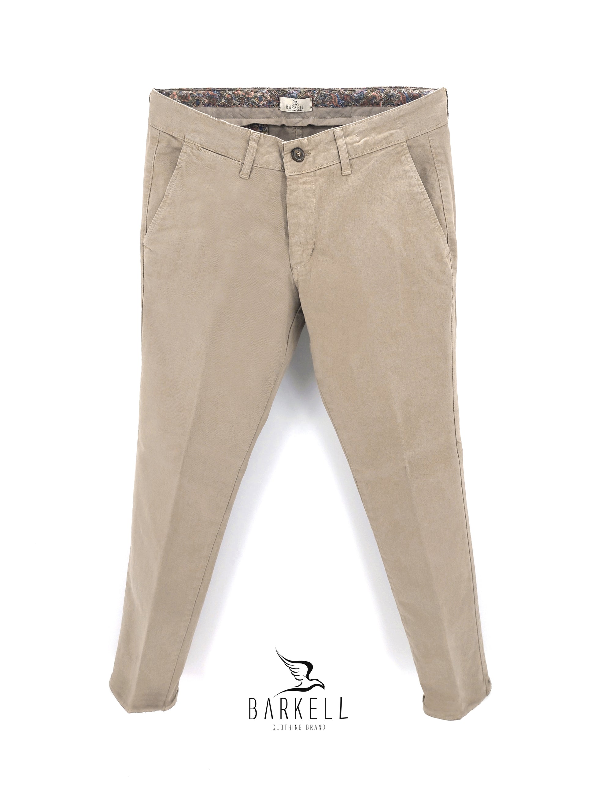 Pantalone di Alta Qualità Modello Chinos con Tasca America e Chiusura a Zip color Beige realizzato in 98% Puro Cotone Gabardina e 2% Elastan.