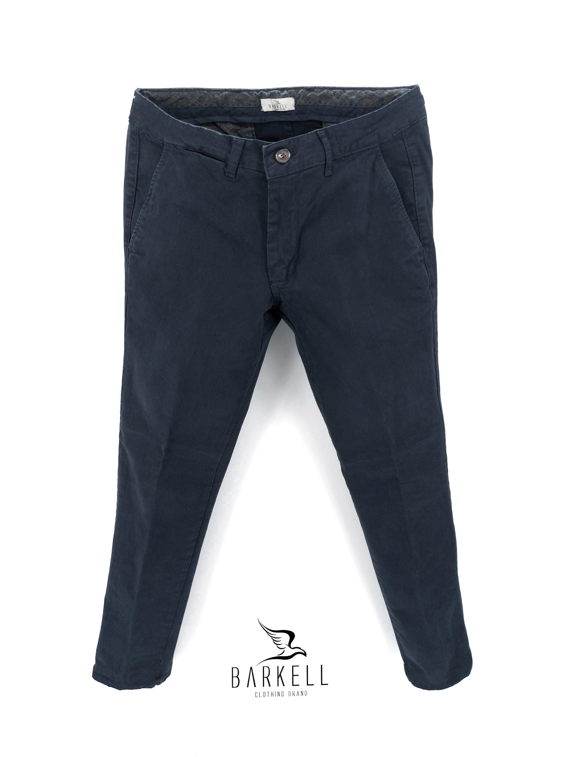Pantalone di Alta Qualità Modello Chinos con Tasca America e Chiusura a Zip color Blu realizzato in 98% Puro Cotone Gabardina e 2% Elastan.