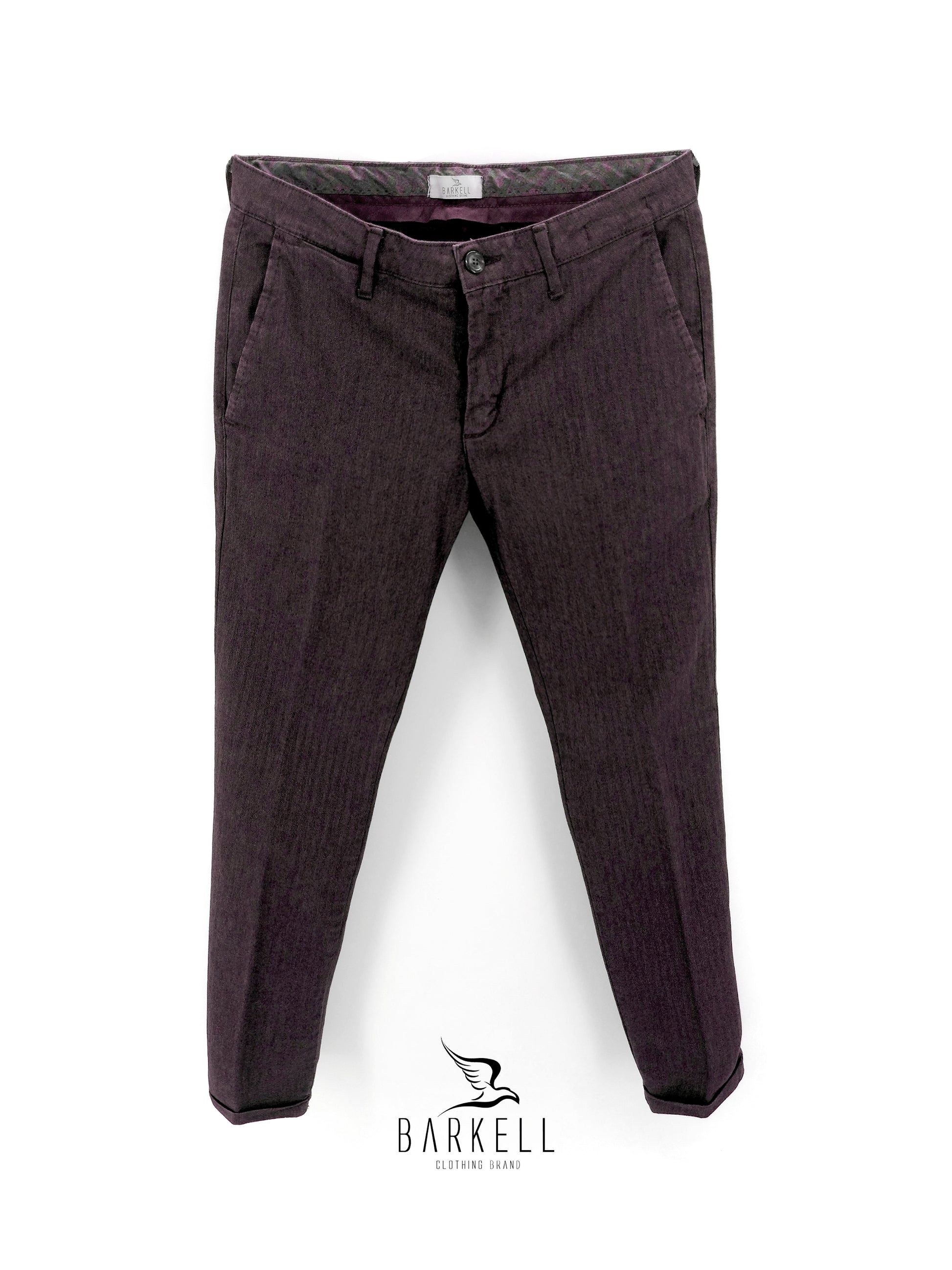 Pantalone di Alta Qualità Modello Chinos con Tasca America e Chiusura a Zip con Risvolto sul Fondo color Bordeaux realizzato in 77% Puro Cotone Spigato 20% Poliestere e 3% Elastan.