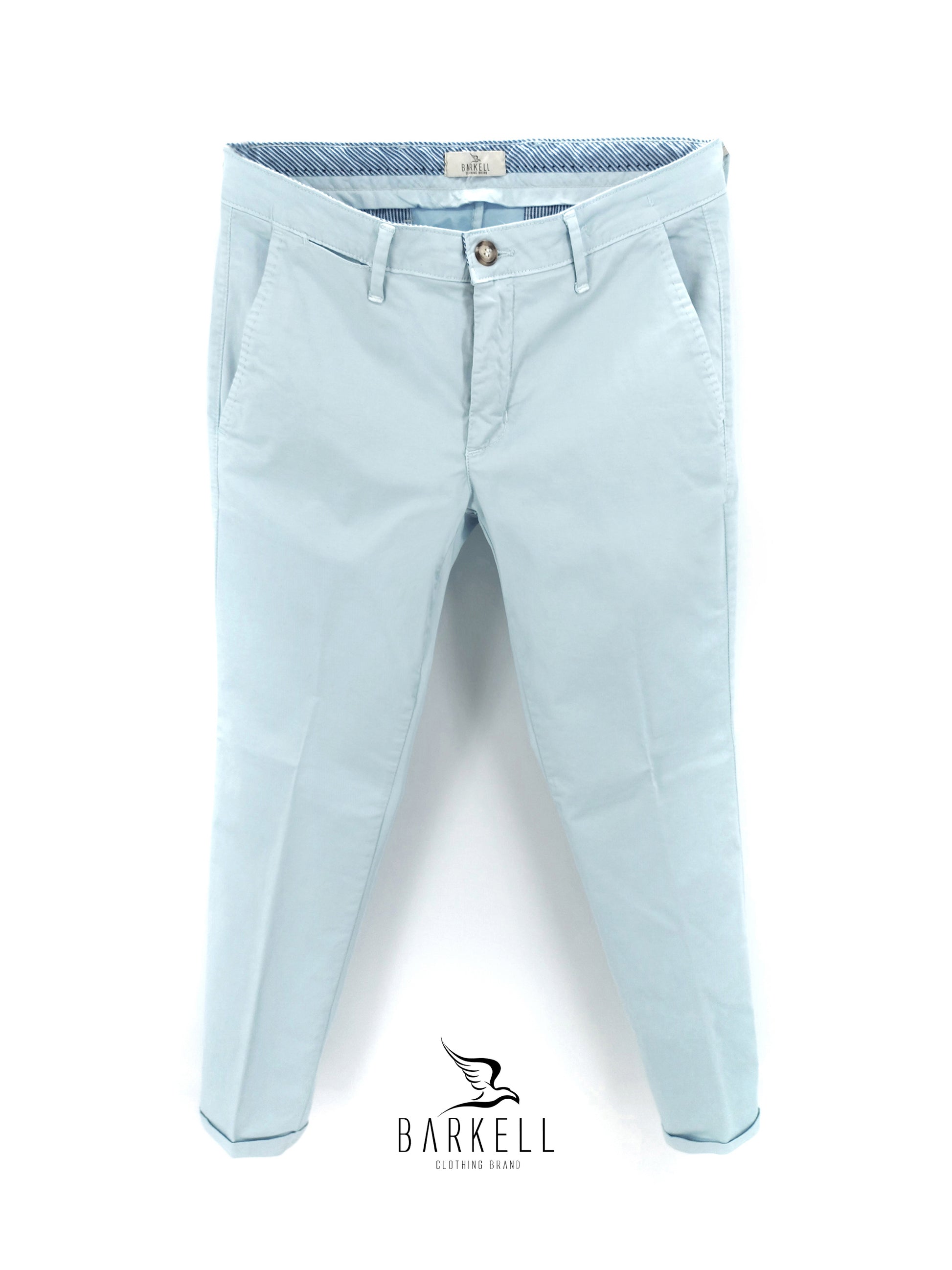 Pantalone Celeste Cielo Modello Chinos in Cotone Raso