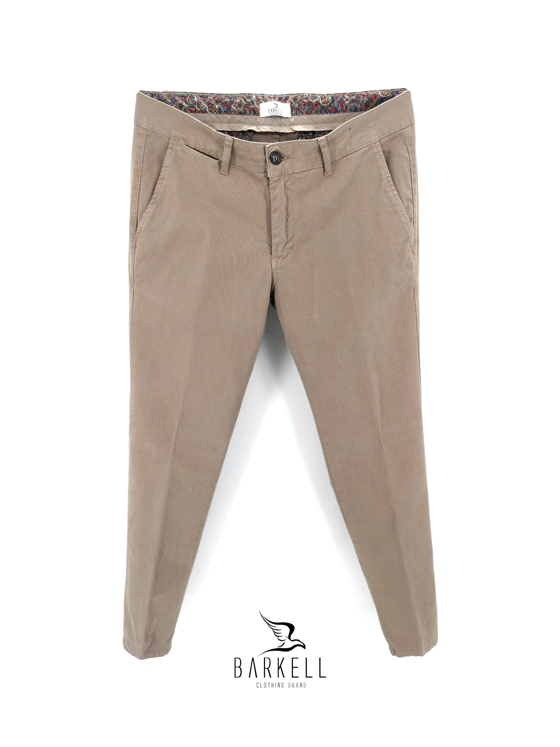 Pantalone di Alta Qualità Modello Chinos con Tasca America e Chiusura a Zip color Corda realizzato in 98% Puro Cotone Cannettato Diagonale e 2% Elastan.