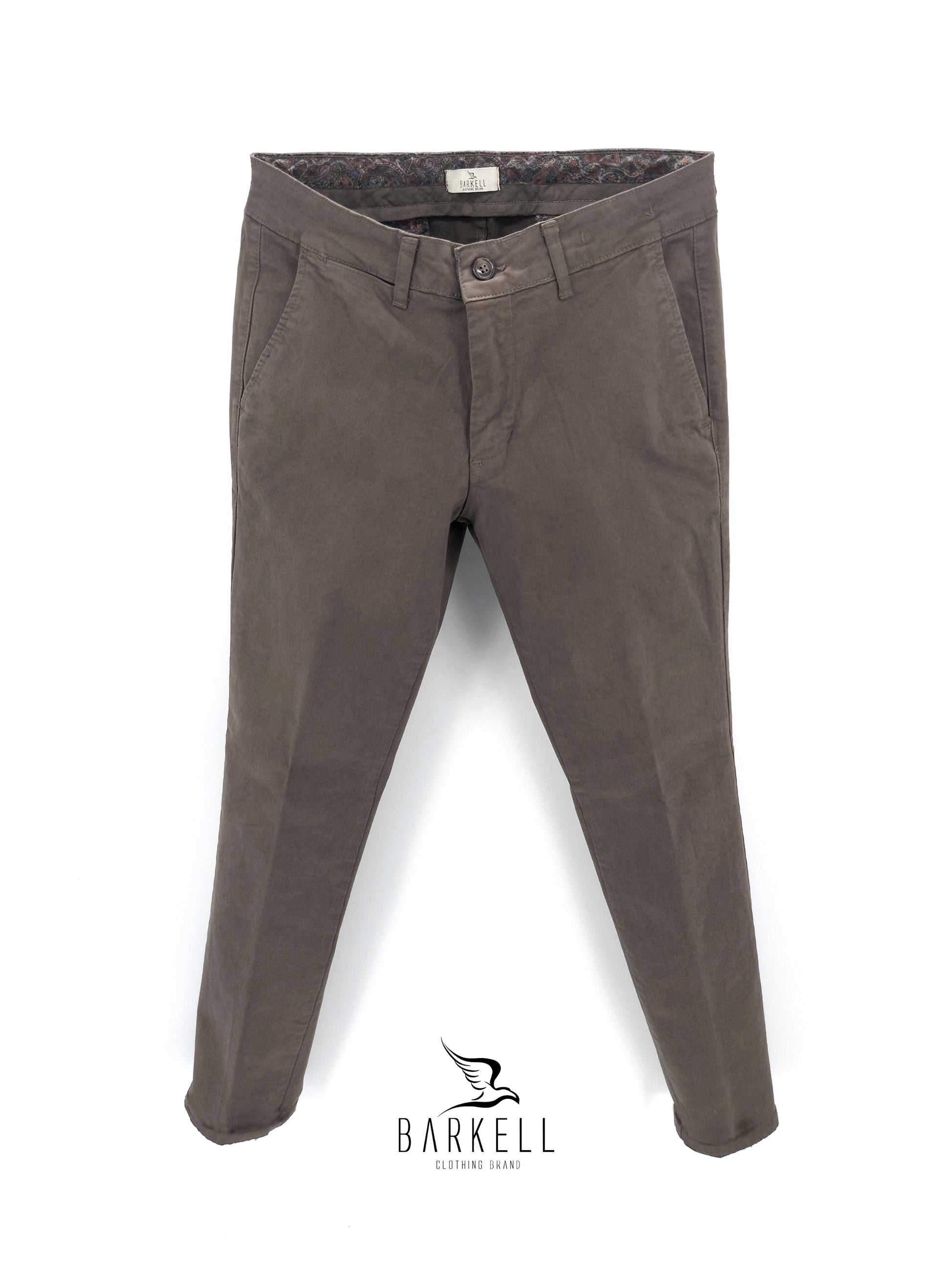 Pantalone di Alta Qualità Modello Chinos con Tasca America e Chiusura a Zip color Fango realizzato in 98% Puro Cotone Gabardina e 2% Elastan.