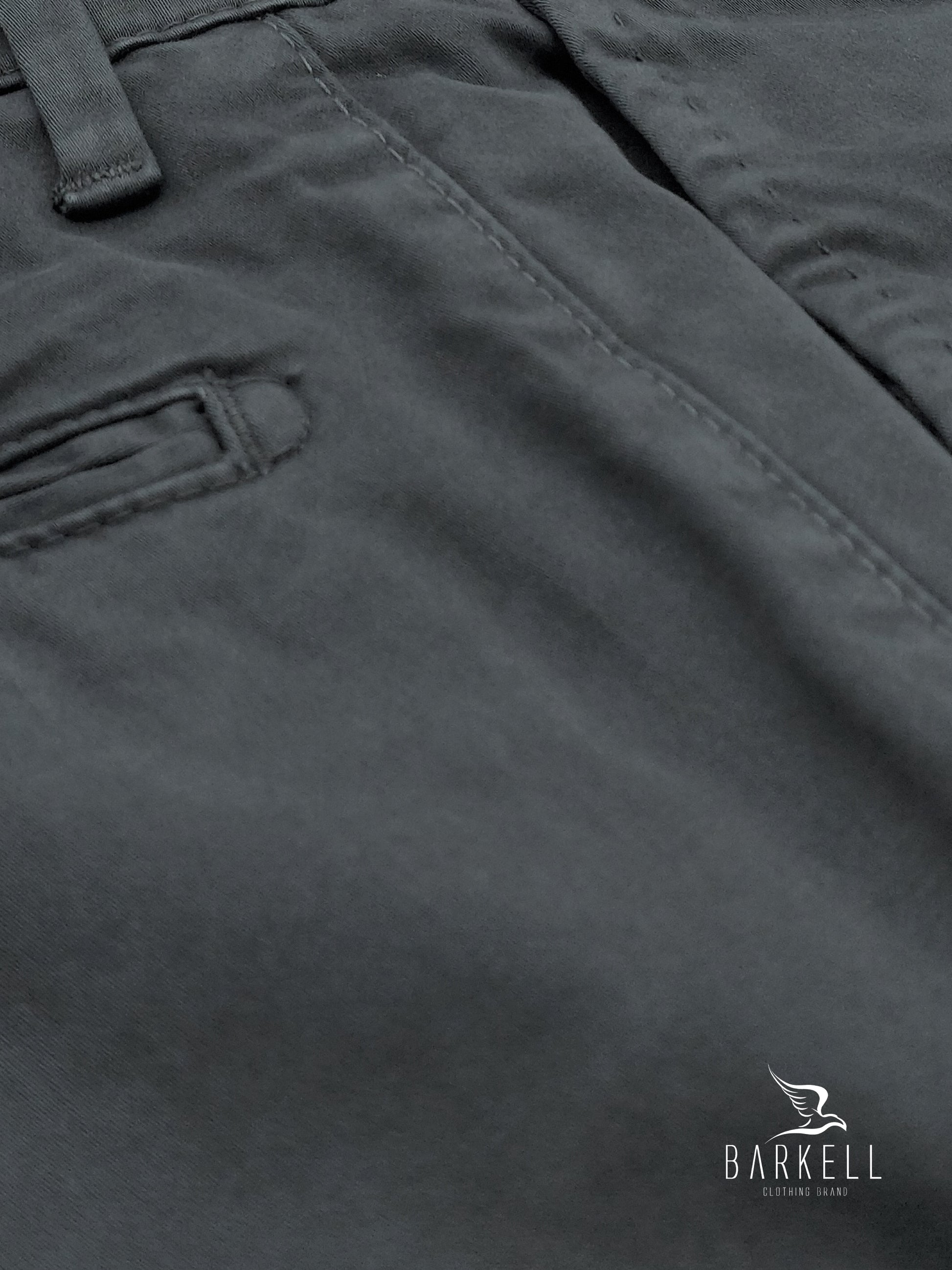 Pantalone di Alta Qualità Modello Chinos con Tasca America e Chiusura a Zip con Risvolto sul Fondo color Grigio Antracite realizzato in 98% Puro Cotone Raso e 2% Elastan.
