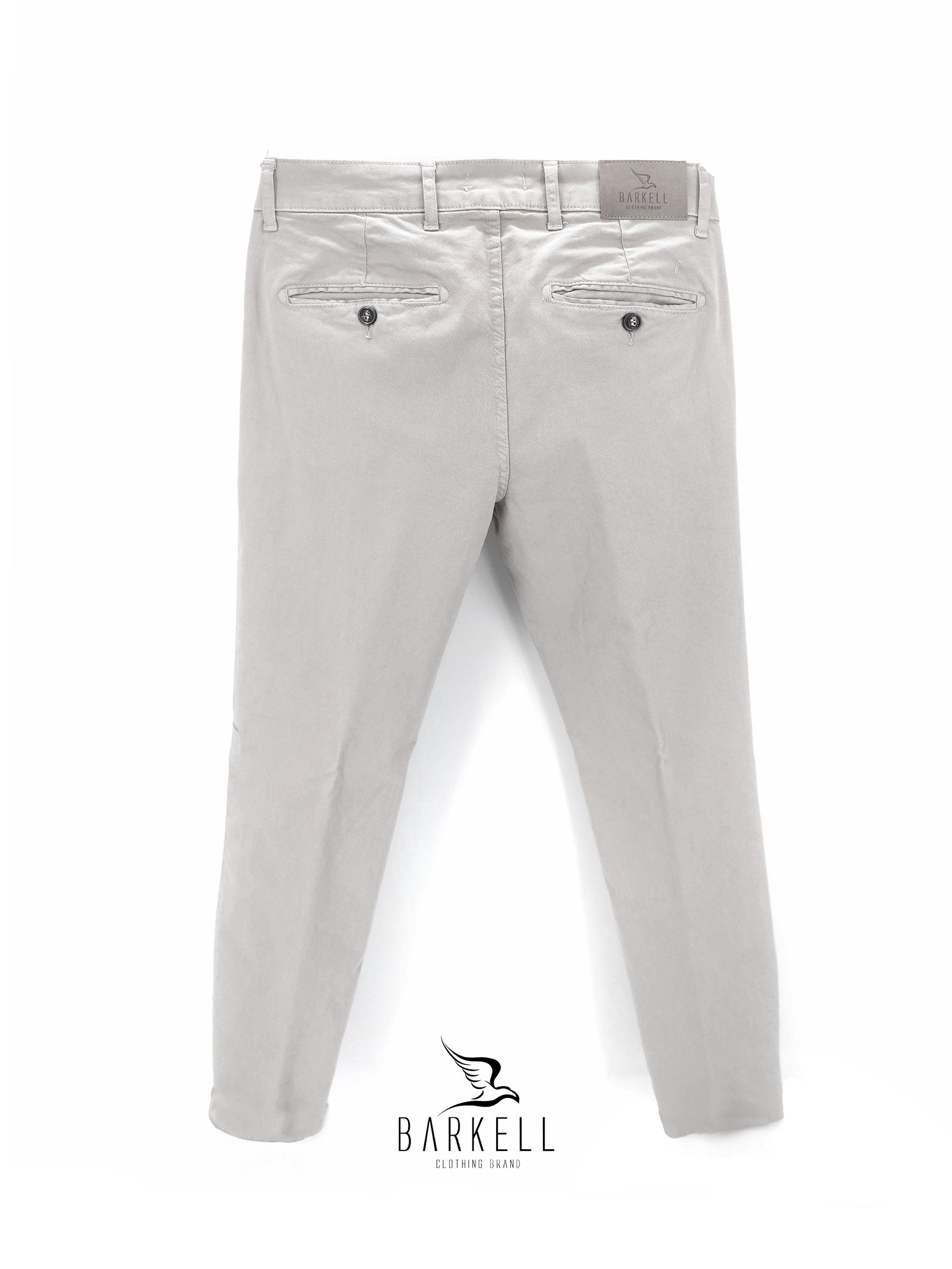 Pantalone di Alta Qualità Modello Chinos con Tasca America e Chiusura a Zip color Grigio Ghiaccio realizzato in 98% Puro Cotone Piquet e 2% Elastan.