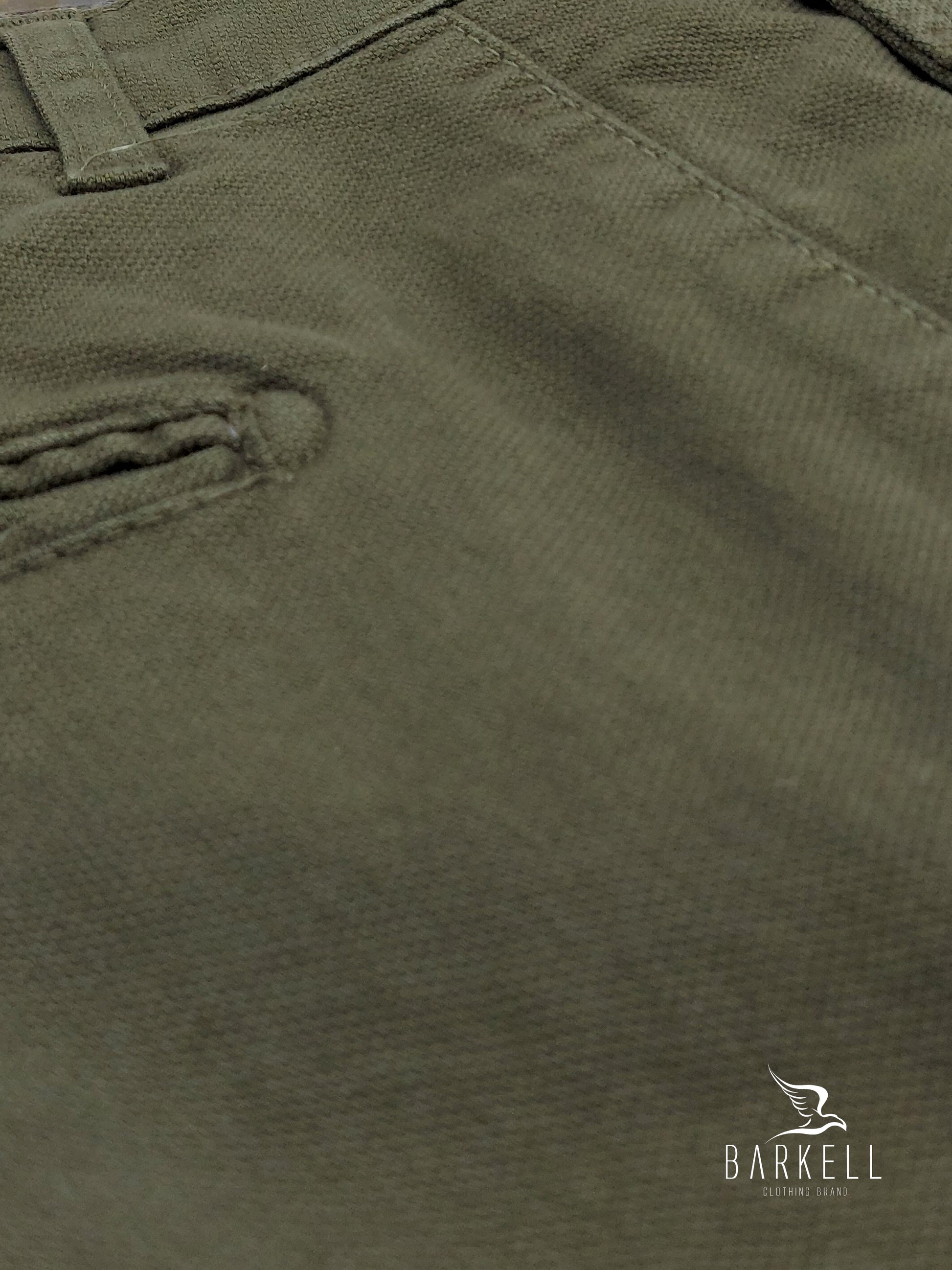 Pantalone Verde Militare Modello Chinos in Cotone Piquet