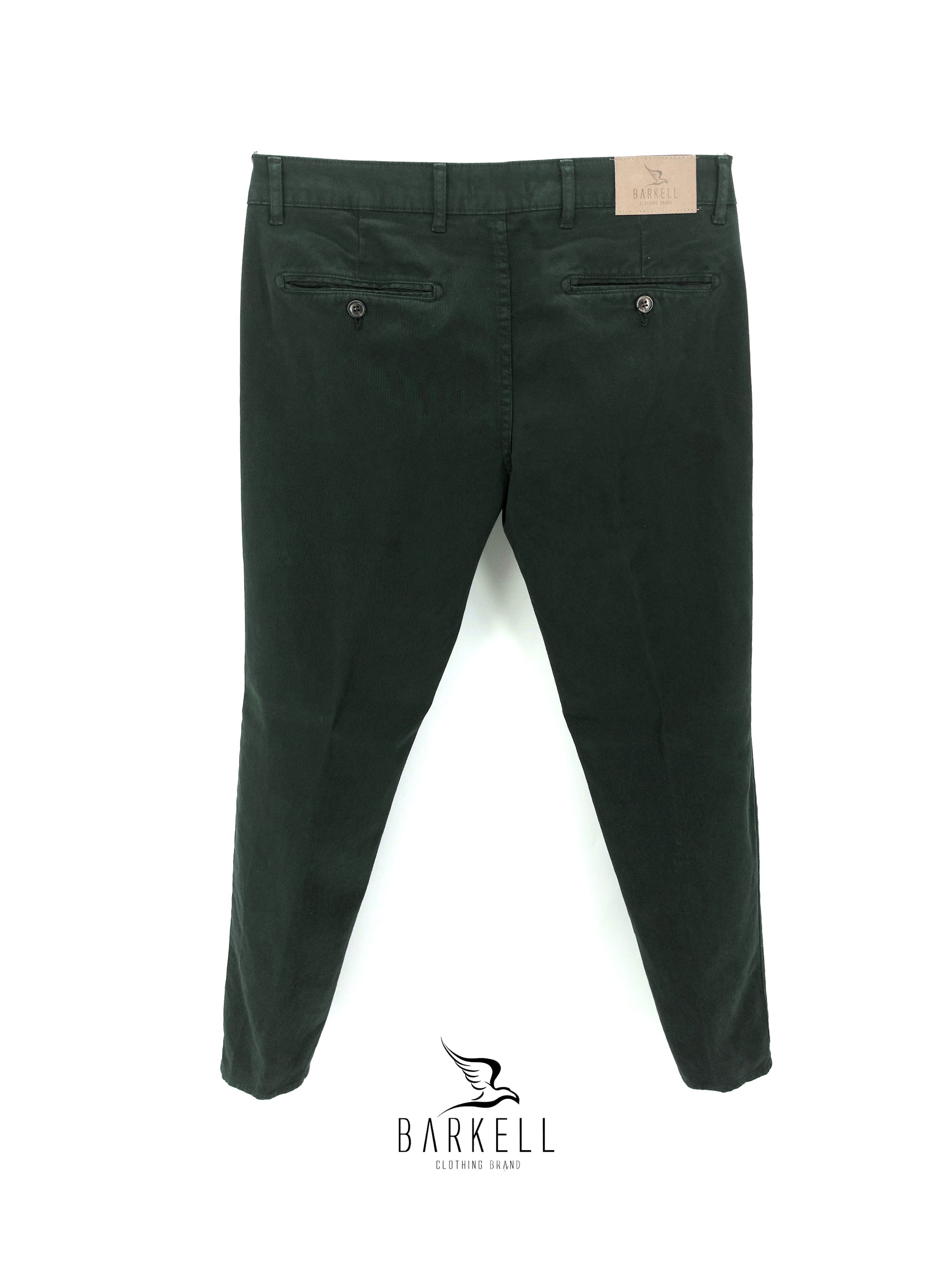 Pantalone di Alta Qualità Modello Chinos con Tasca America e Chiusura a Zip color Verde Bottiglia realizzato in 98% Puro Cotone Cannettato Diagonale e 2% Elastan.