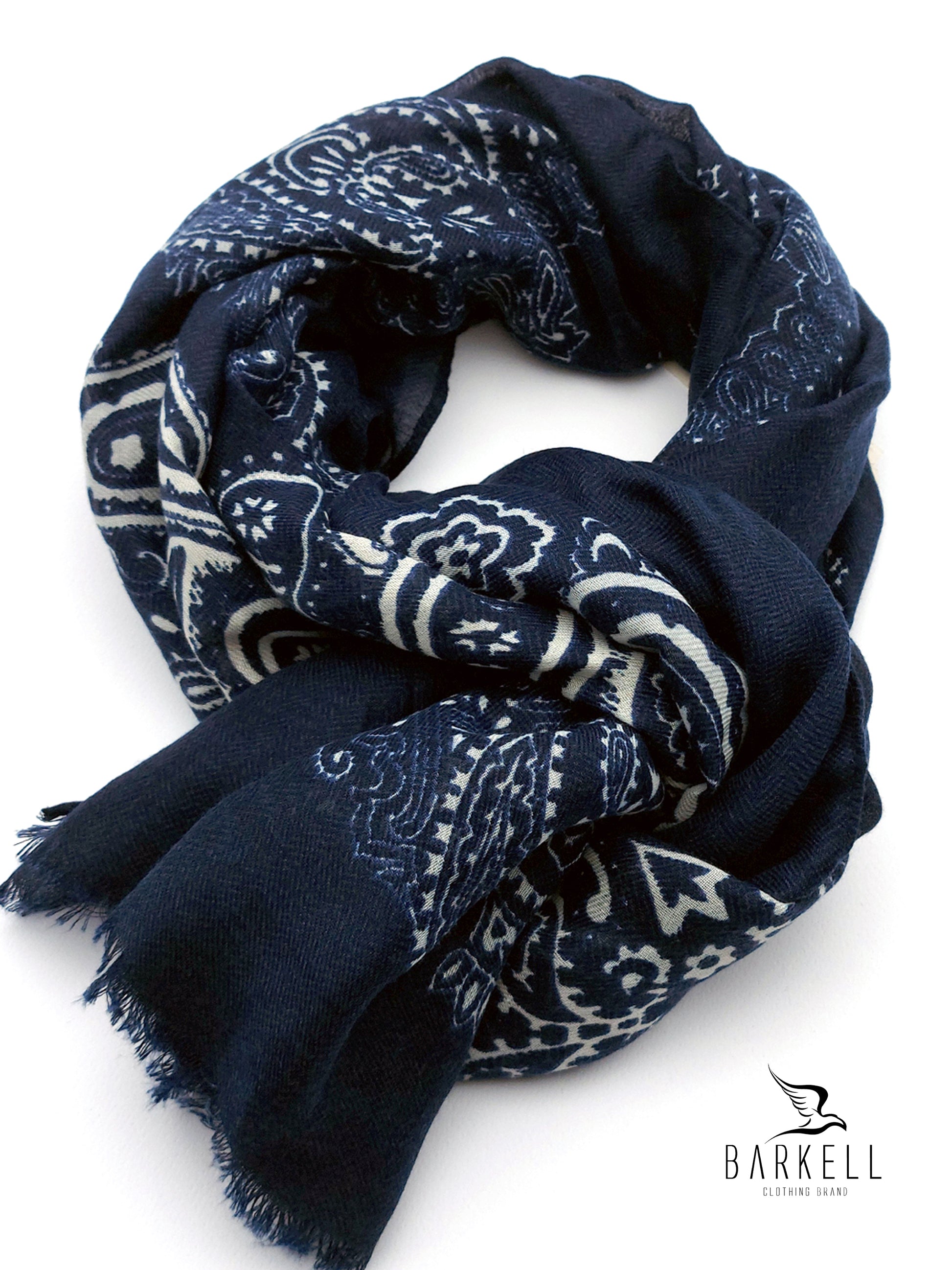 Sciarpa Made in Italy in 100% Morbidissima Poliviscosa fantasia Cashmere fondo Blu.