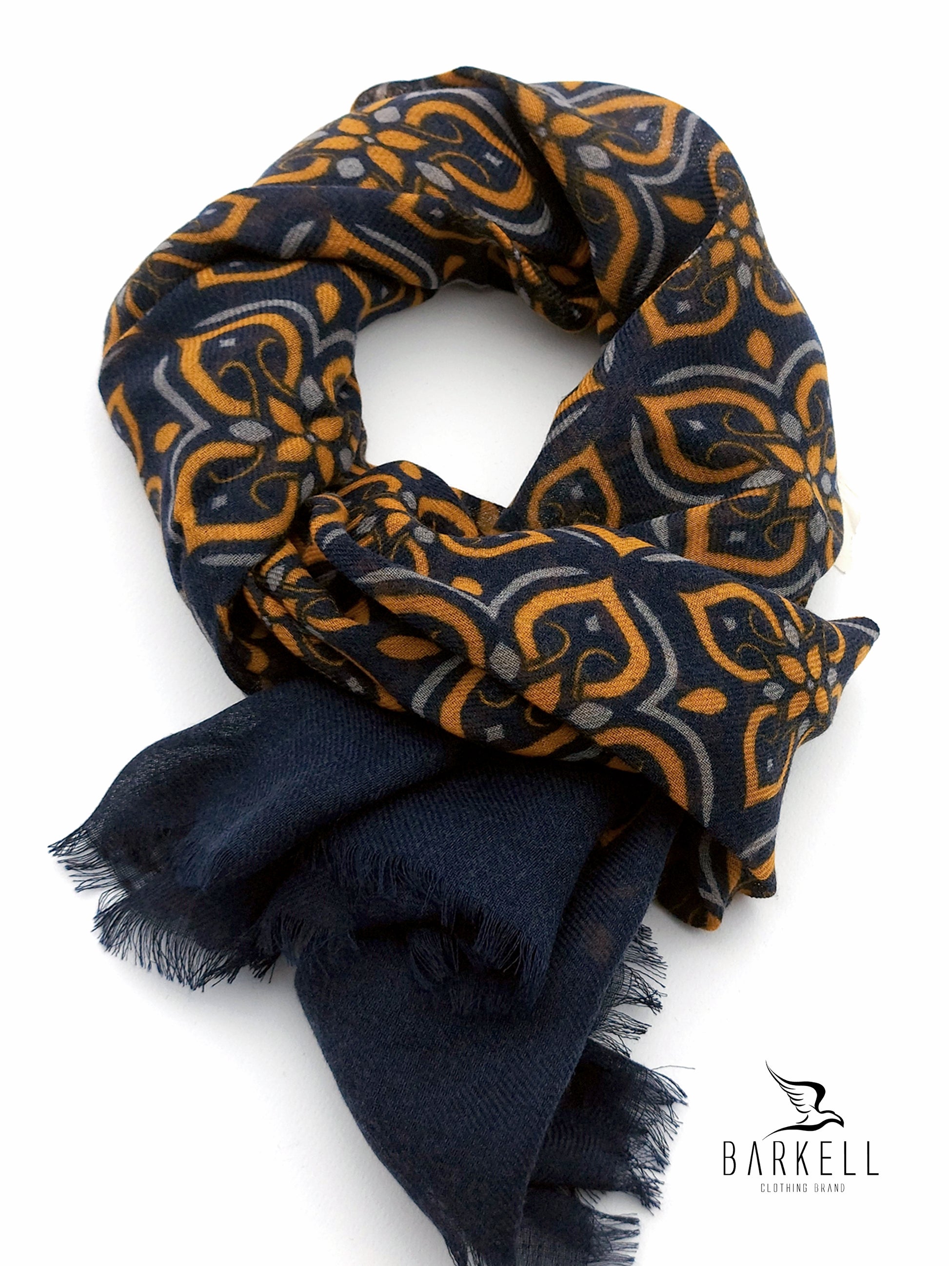 Sciarpa in Pura Lana di Alta Qualità Fantasia Multicolore Fondo Blu