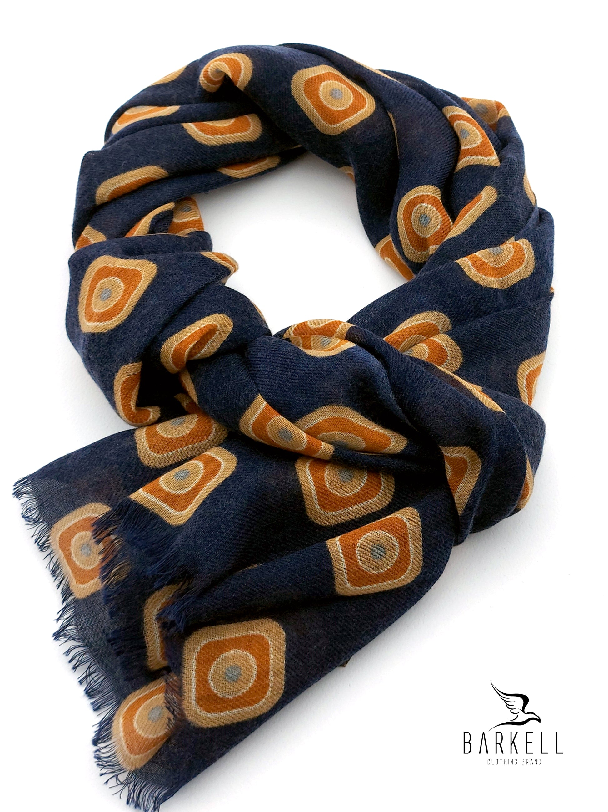 Sciarpa di Alta Qualità Made in Italy in 100% Pura Lana Rasata fantasia Multicolore fondo Blu.