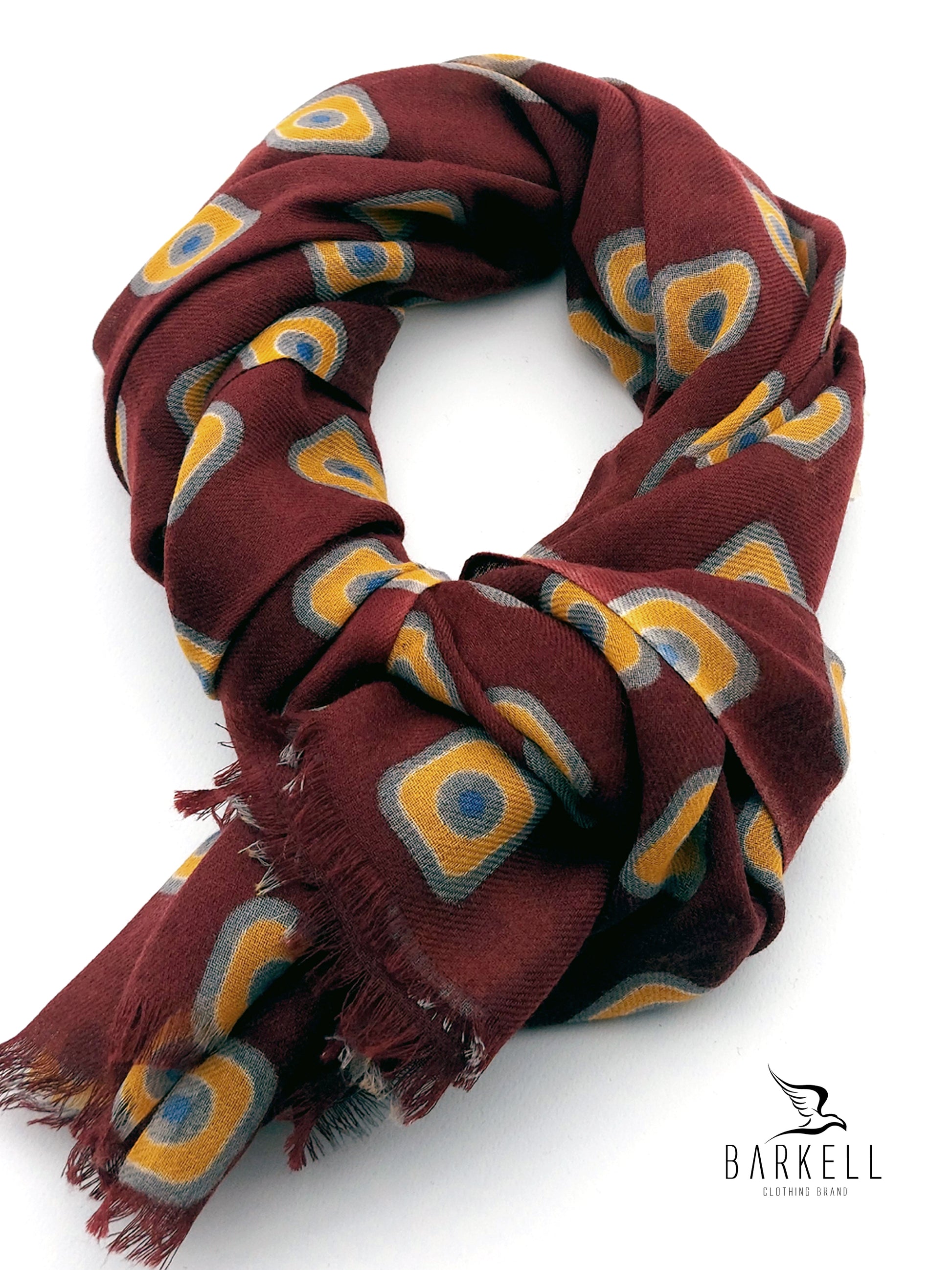 Sciarpa di Alta Qualità Made in Italy in 100% Pura Lana Rasata fantasia Multicolore fondo Bordò.