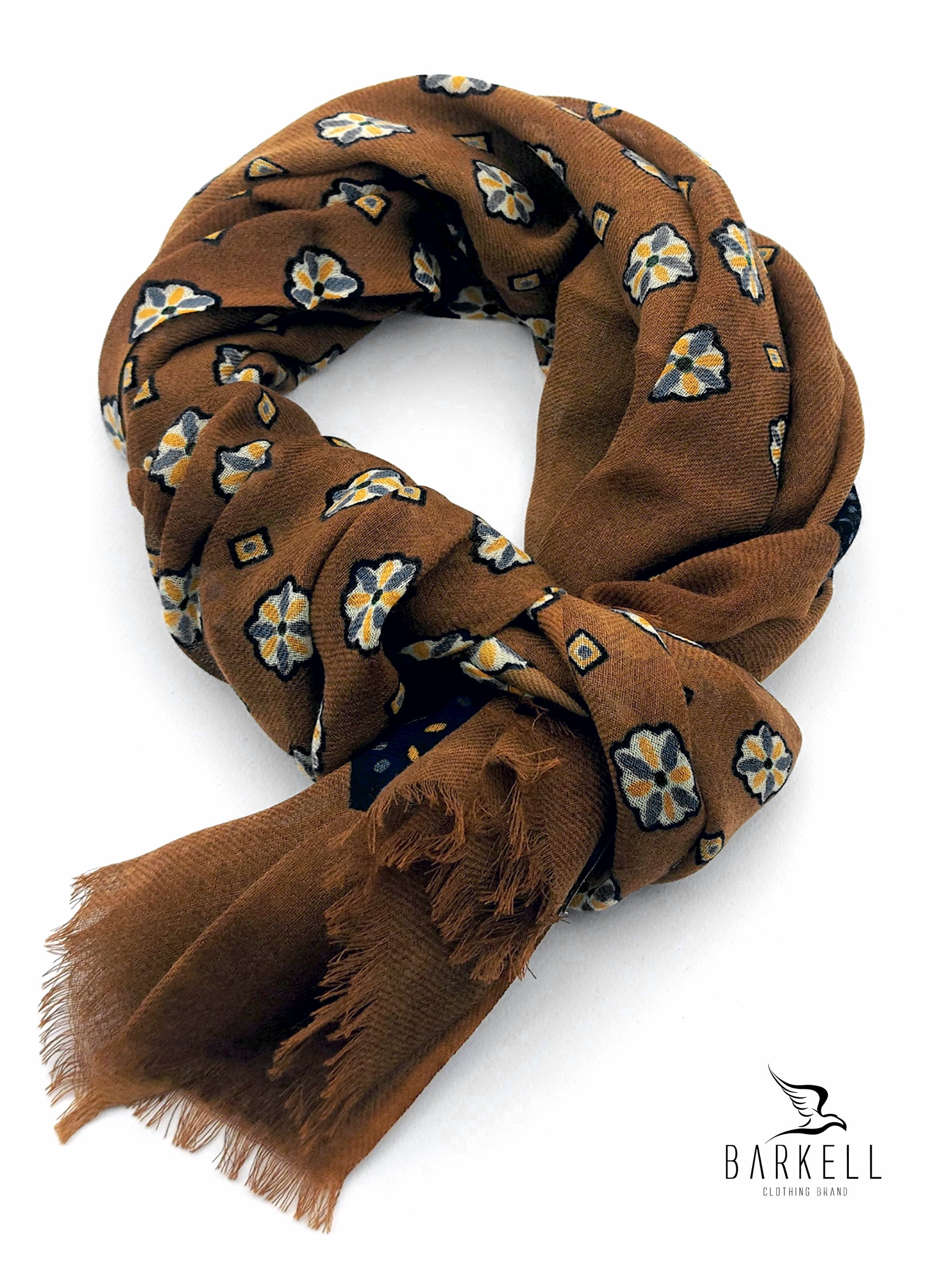 Sciarpa in Pura Lana di Alta Qualità Fantasia Multicolore Fondo Cammello
