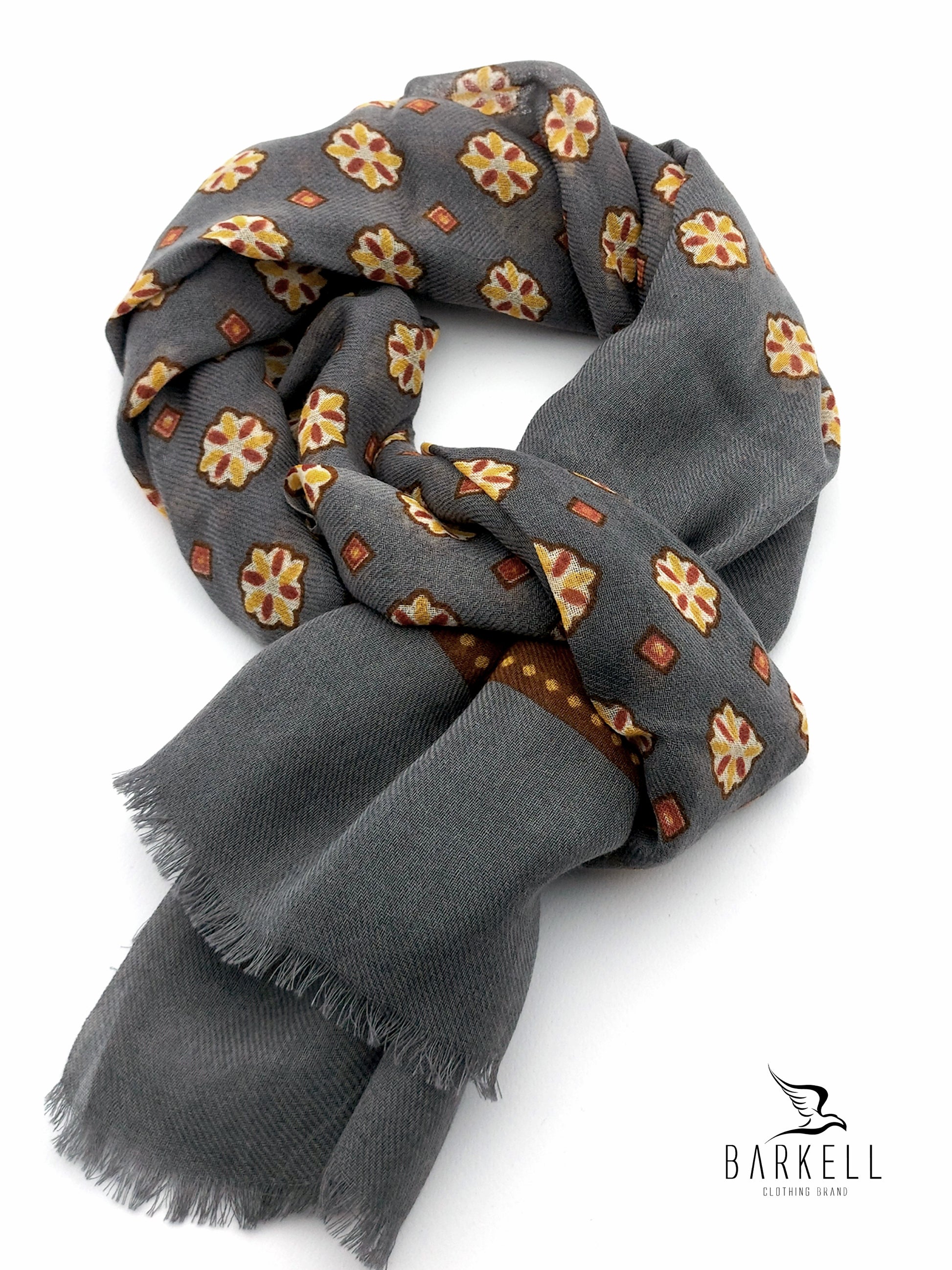 Sciarpa in Pura Lana di Alta Qualità Fantasia Multicolore Fondo Grigio