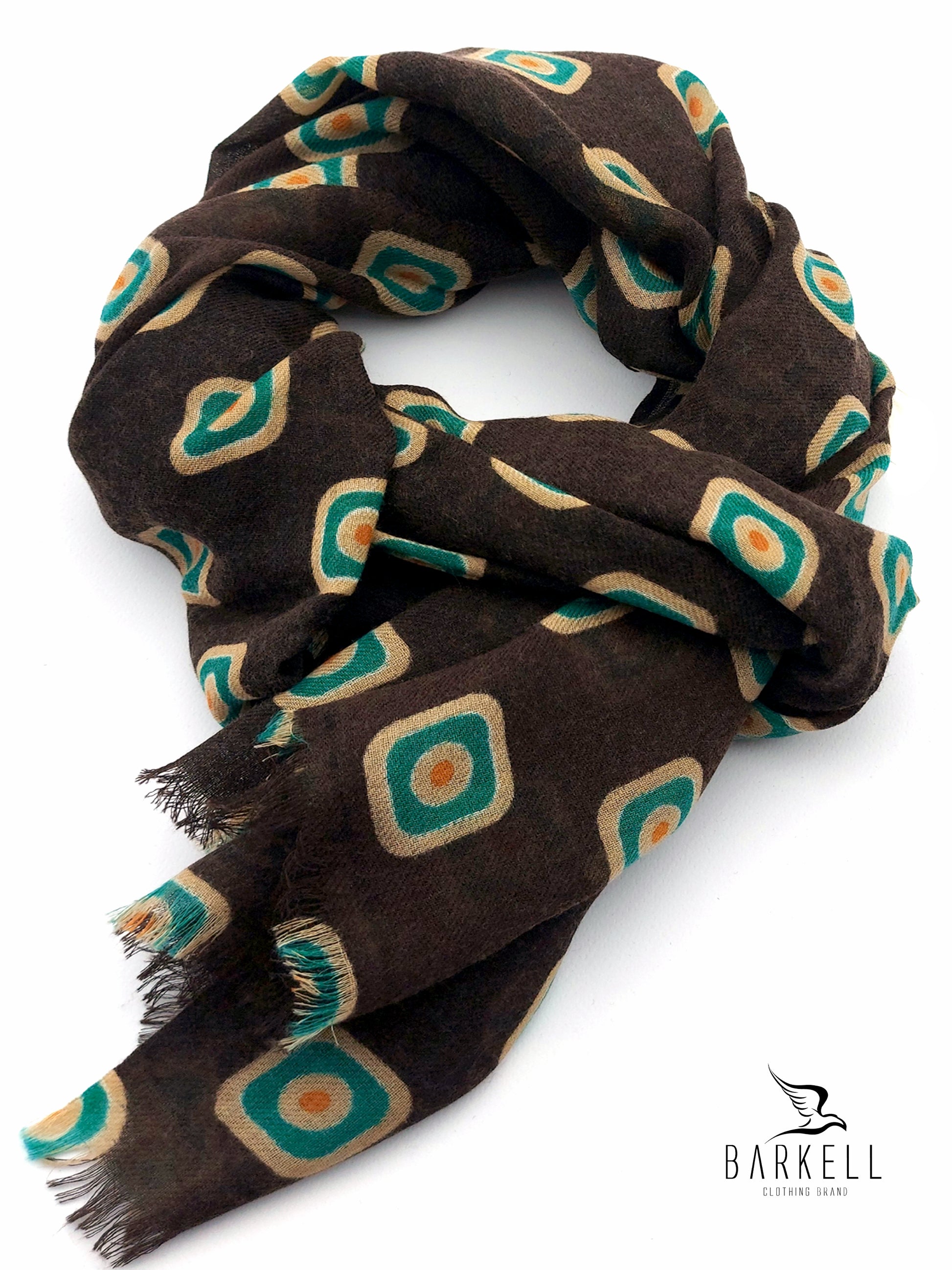 Sciarpa in Pura Lana di Alta Qualità Fantasia Multicolore Fondo Marrone
