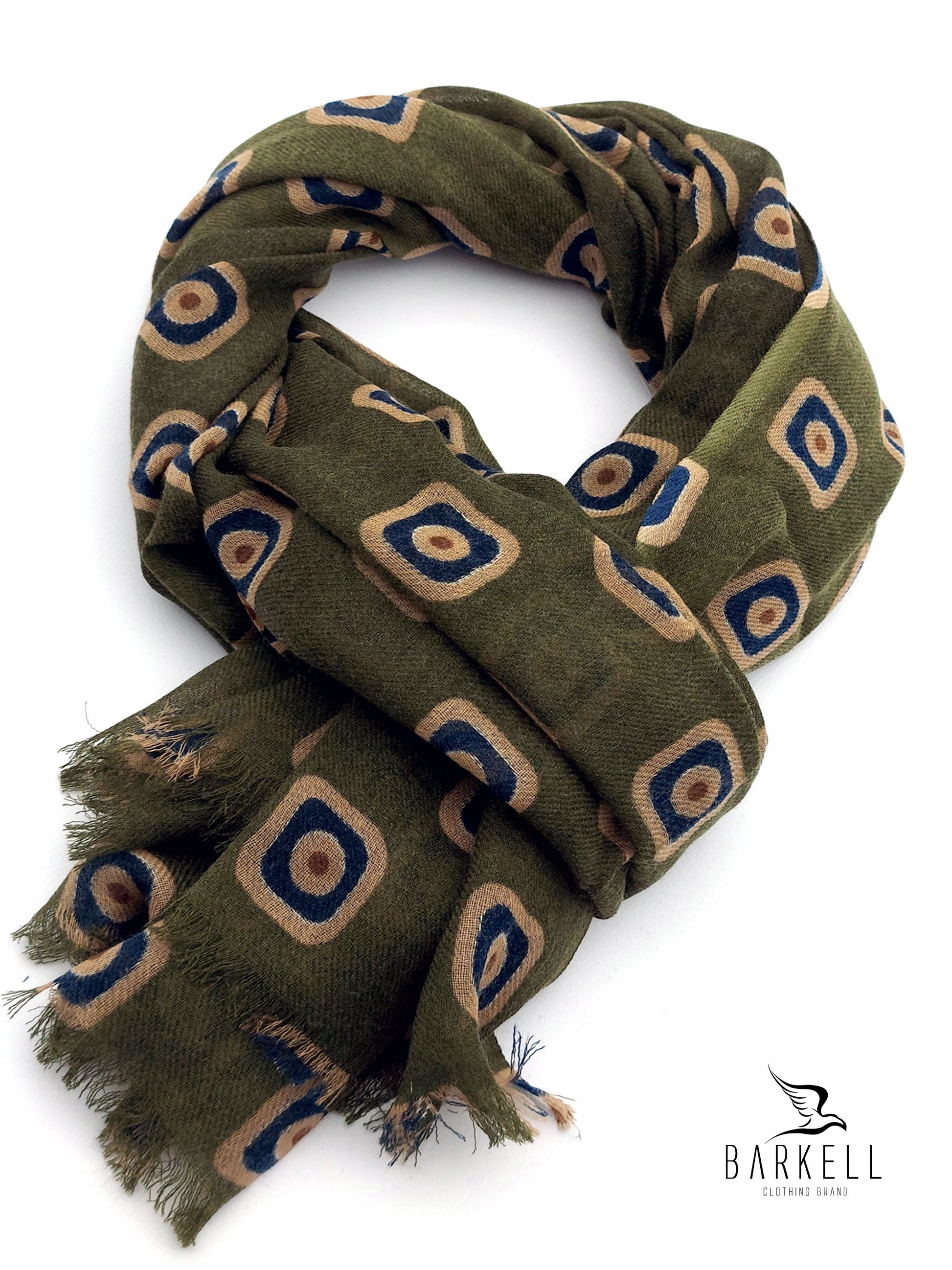 Sciarpa di Alta Qualità Made in Italy in 100% Pura Lana Rasata fantasia Multicolore fondo Verde.