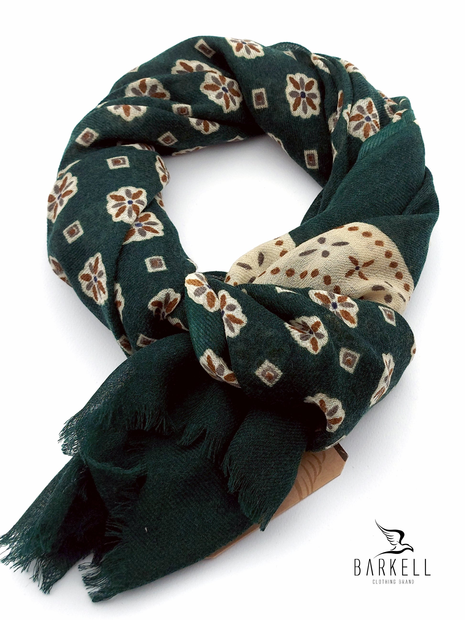 Sciarpa di Alta Qualità Made in Italy in 100% Pura Lana Rasata fantasia Multicolore fondo Verdone.