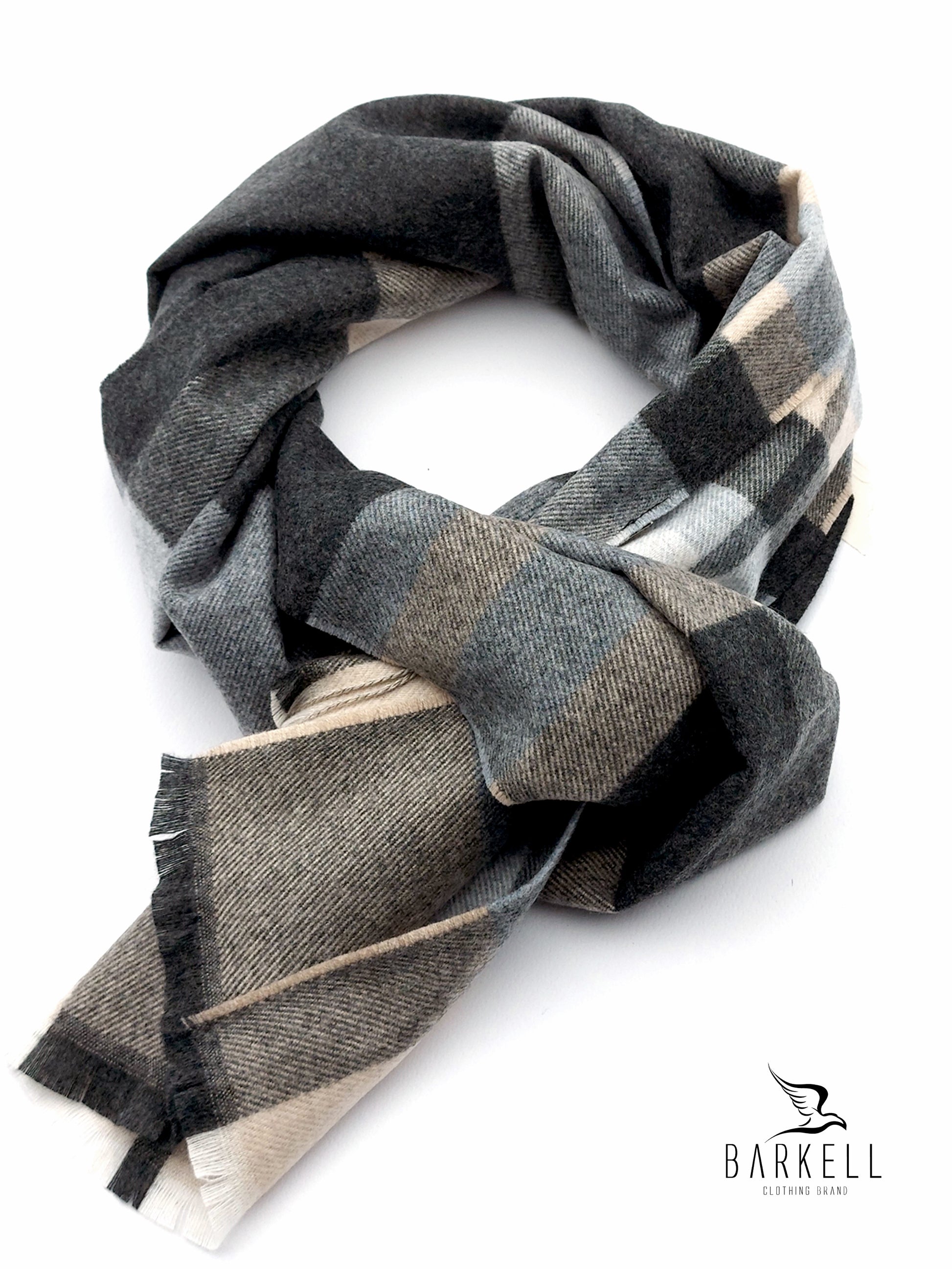 Sciarpino Made in Italy in 100% Morbidissima Poliviscosa Effetto Lana fantasia Scozzese fondo Grigio.