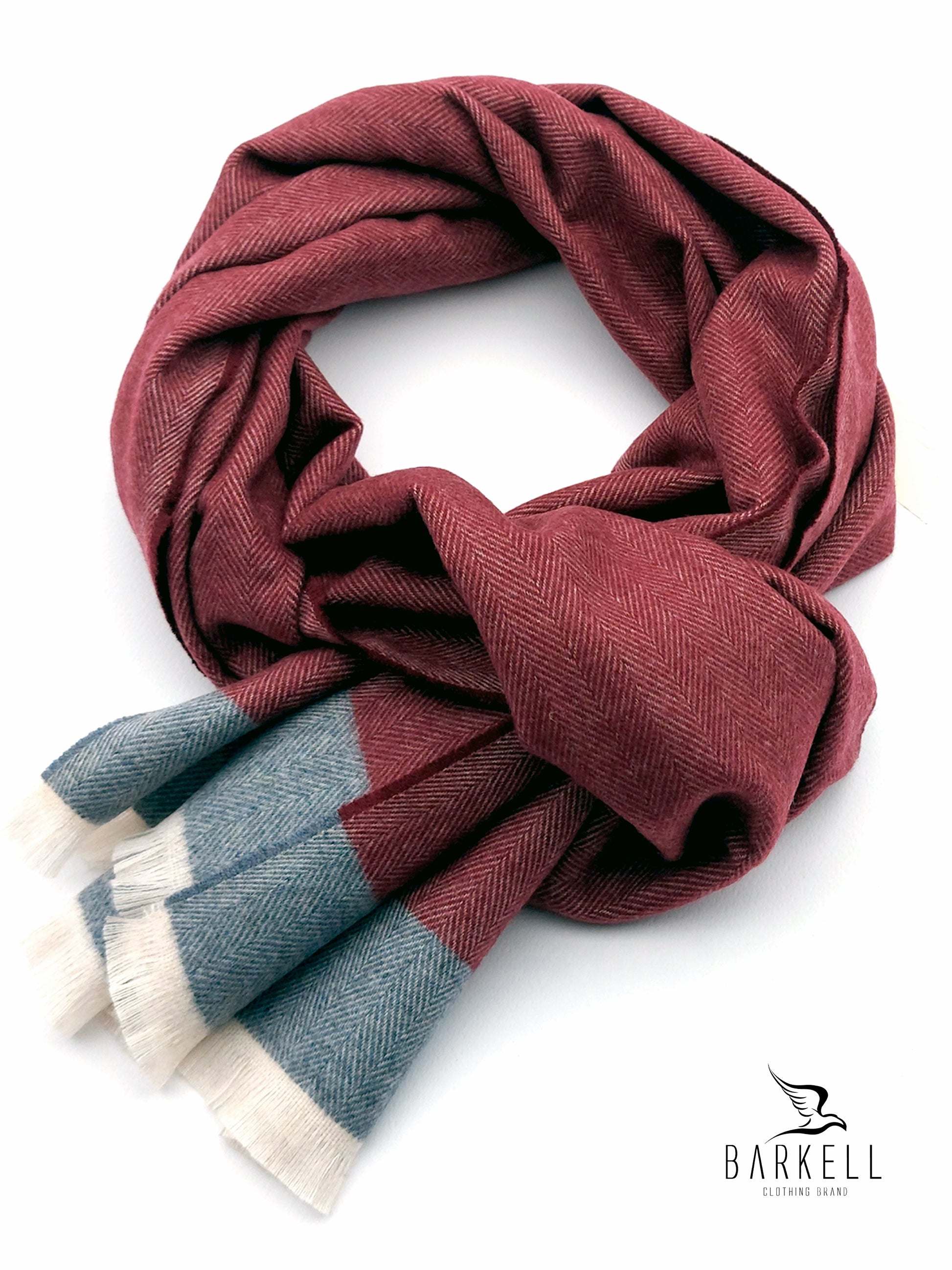 Sciarpino Made in Italy in 100% Morbidissima Poliviscosa Effetto Lana fantasia Spigata fondo Bordò.