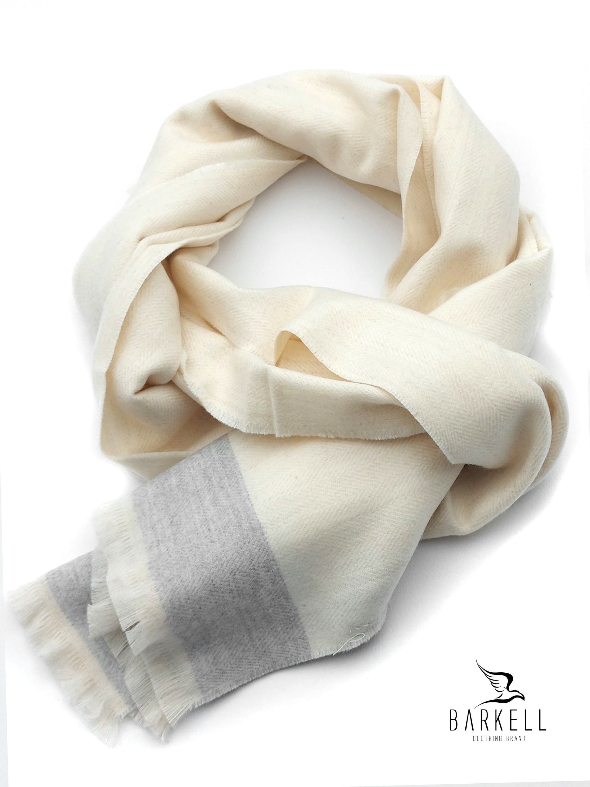 Sciarpino Made in Italy in 100% Morbidissima Poliviscosa Effetto Lana fantasia Spigata fondo Panna.
